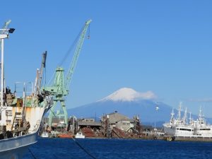 次に快晴の海にウインドサーフィン、そして富士山🗻